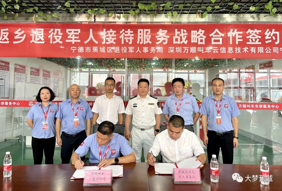 7月17日,蕉城区返乡退役军人接待服务站、退役军人就业创业示范点挂牌暨蕉城籍年度返乡退役军人接待服务战略合作签约仪式在万顺叫车宁德分公司动车站实体店举行。区委常委、区人武部政委林晓光,副区长杨泰以及区退役军人事务局相关负责人参加本次活动。