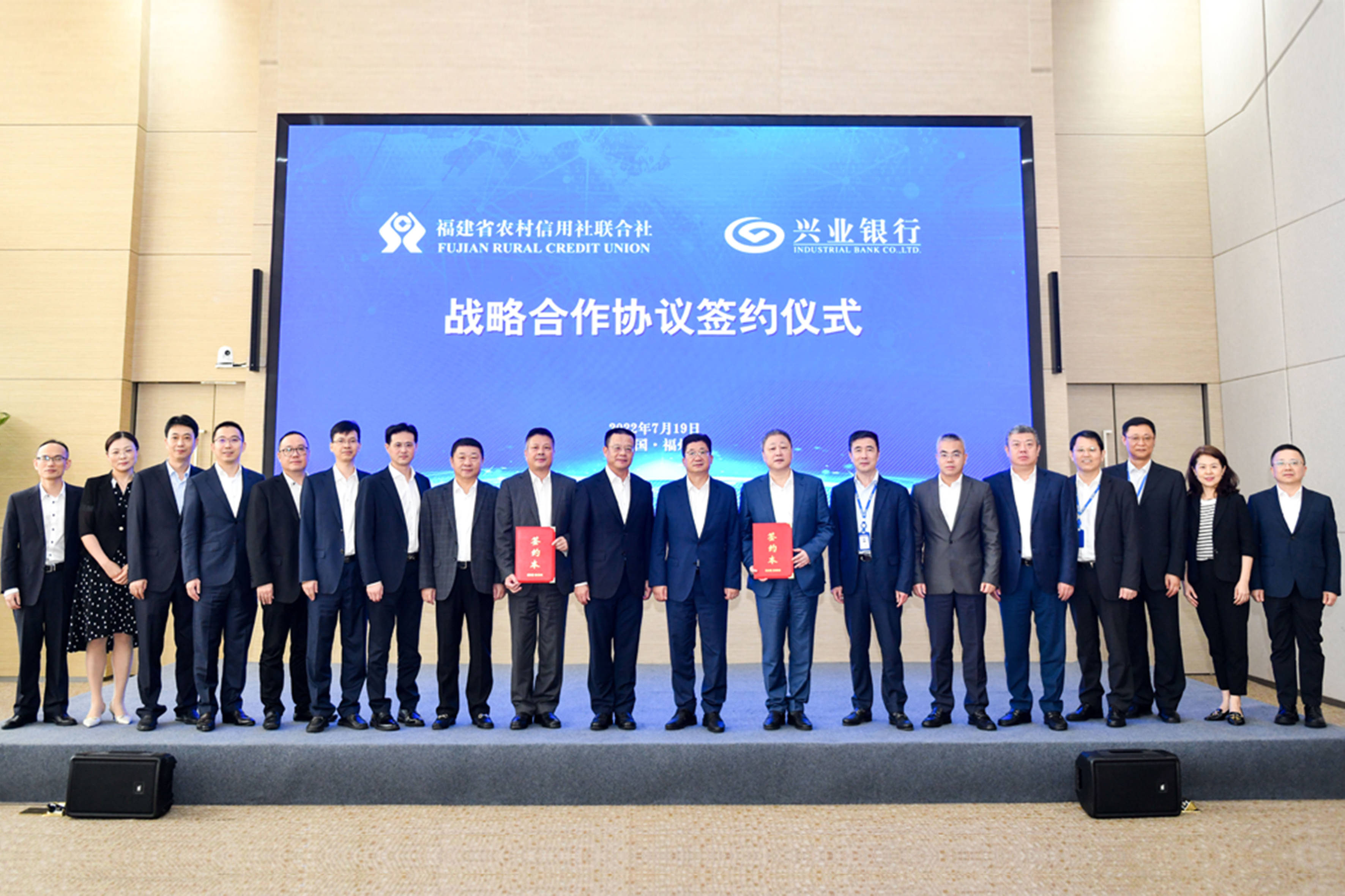 7月19日,福建省农信联社与兴业银行在福州签署全面战略合作协议。兴业银行党委书记、董事长吕家进、省农信联社党委书记、理事长李卫民见签,兴业银行党委委员张霆、省农信联社党委委员、副主任张永良代表双方签约,省农信联社党委委员、副主任陈金德以及双方有关部门负责人出席签约仪式。