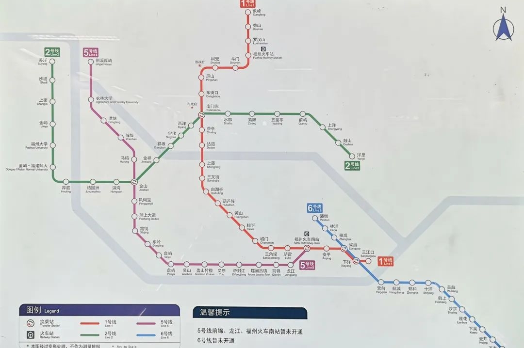 福州地铁6号线全线(除莲花站、壶井站)。各站开放2个出入口、1处安检通道。