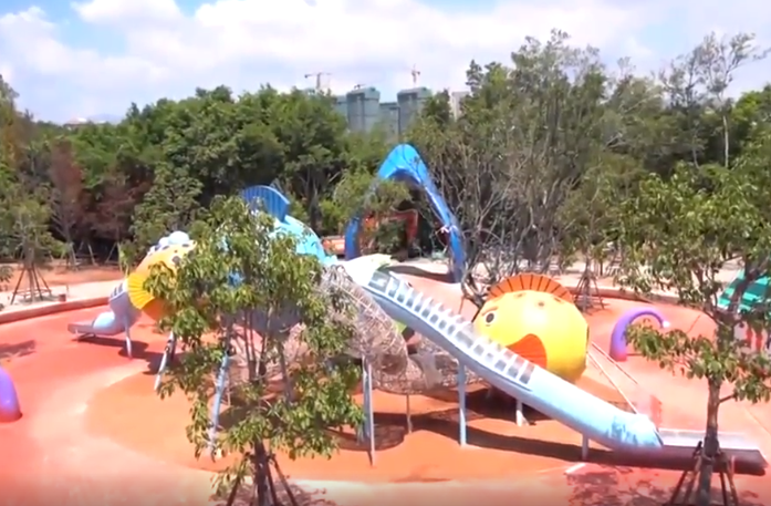 在园博苑教育岛西侧,集美区最大的儿童乐园项目已颇具规模。走进园内记者看到,大型儿童游乐设施基本安装完毕,错落有致地分布在各处,大型乔木也都种植完成,工人们正在进行绿化、道路等收尾施工。该项目占地近4万平方米,与集美新城市民广场、杏林湾商务营运中心隔水相望,园内规划了三角梅栈道、泡泡鱼浅滩、龙舟溯流、海滩市集等七大主题游乐区,设有约30项儿童游乐设施,包含多人跷跷板、彩虹蹦床、亲子鸟巢秋千、旱喷水车等,项目预计今年9月底完工。