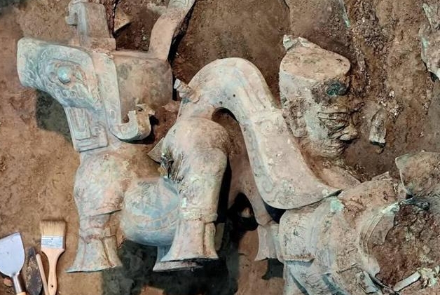 8月24日下午,四川广汉三星堆遗址8号祭祀坑成功提取出一件大型立人神兽,是截至目前三星堆出土众多动物造型青铜器中最大的一件!