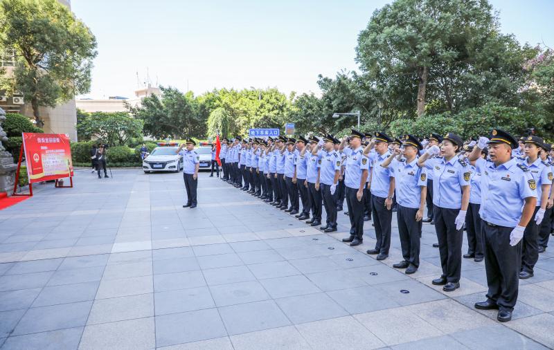 上午10时,厦门交通运输综合执法支队全体执法人员着“晴空蓝”新式制服集中亮相,精神抖擞,列队方阵。