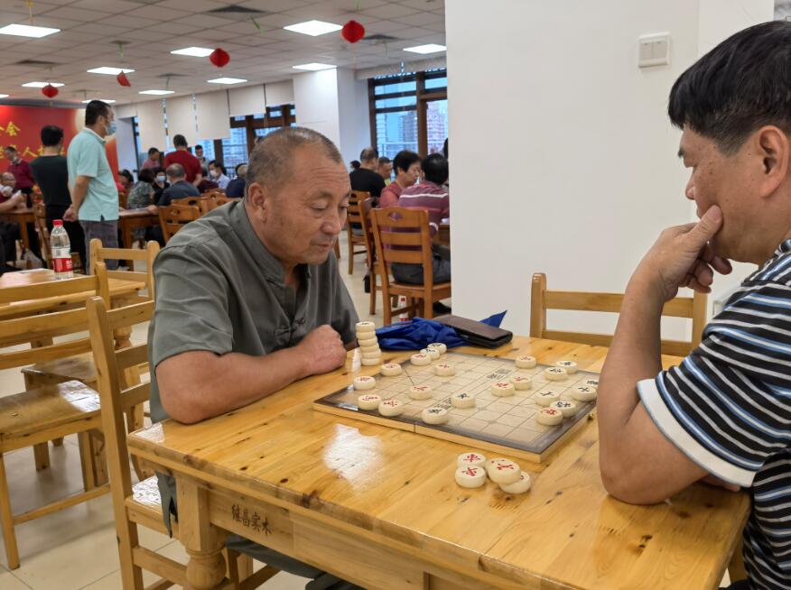 海峡导报·新福建客户端9月26日讯(记者 钱玲玲/文 常海军/图 通讯员 谢韵英 黄勤)拱卒、跳马、出车、飞象……小小的棋盘里,“战事”激烈。老人们时而托腮沉思,时而主动出击,目不转睛地凝视着棋盘上的细微变化。