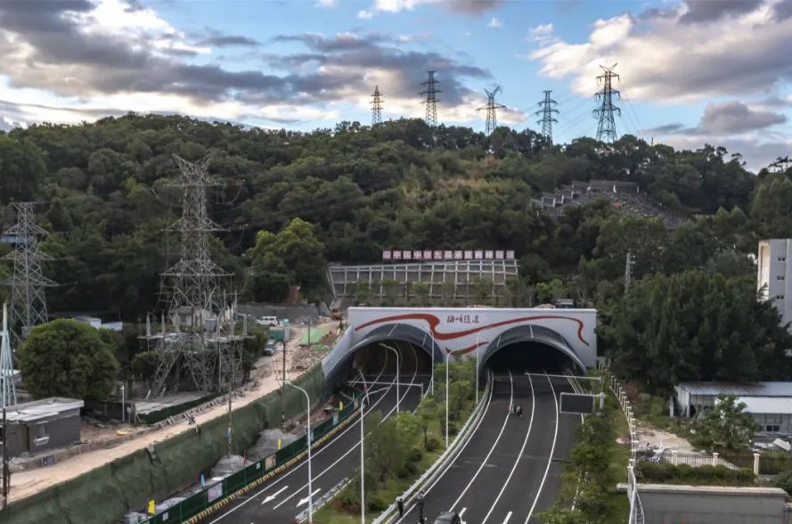 “梅峰隧道两侧洞口的延伸造型采用钢拱架结构设计,这在城区隧道建设中属于首次采用。”吴吉良告诉记者,梅峰隧道下穿了梅峰山地公园,是国内首条穿越生态景区的隧道。钢拱架结构设计,能让隧道洞门造型更好地与梅峰山地公园及福道环境融为一体。