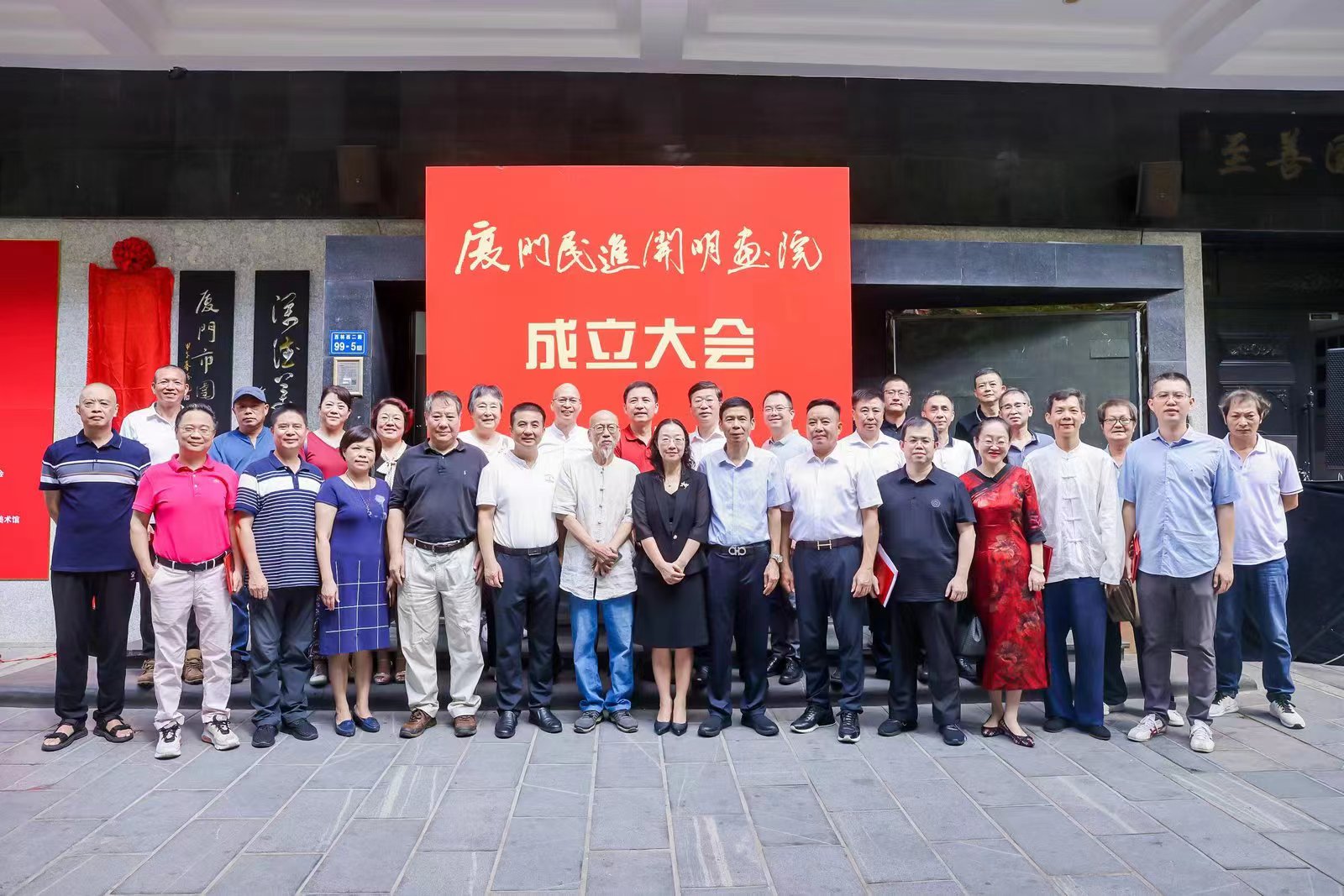 中共厦门市委统战部副部长、二级巡视员陈宏,民进福建省委会副主委温青,福建省开明画院副院长沈斗平,市人大教科文卫委主任齐晓玲,市政协文史学委主任、市政协书画院副院长陈甦帆,民进福建省委会副主委、厦门市委会主委吴丽冰,厦门市美术家协会副主席赵星,厦门民进开明画院院长张葆冬共同为厦门民进开明画院揭牌。