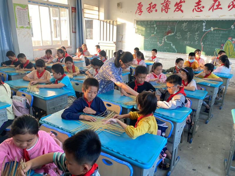 常态化教学,集中授课。下郑小学是该区“草竹编进校园”的第一所学校,每周三下午的第二课堂,就是同学们学习草竹编制作的时间。“草竹编进校园,学生既可以学习一门传统技艺,又能领会到老祖先与自然和谐共处的智慧。孩子们学习兴趣都很高,很多已经连续上了两三年,从开始编一些草人,到现在已经可以编小花篮、竹篓了。”当地草竹编非遗传承人林建春欣慰道。