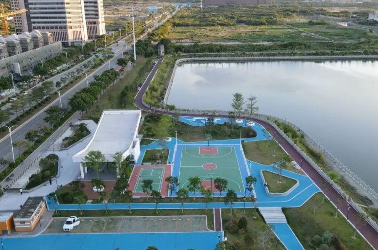 该项目主要建设内容包含配套服务用房、篮球场、羽毛球场以及约1200米长的沿湖休闲康体步道。