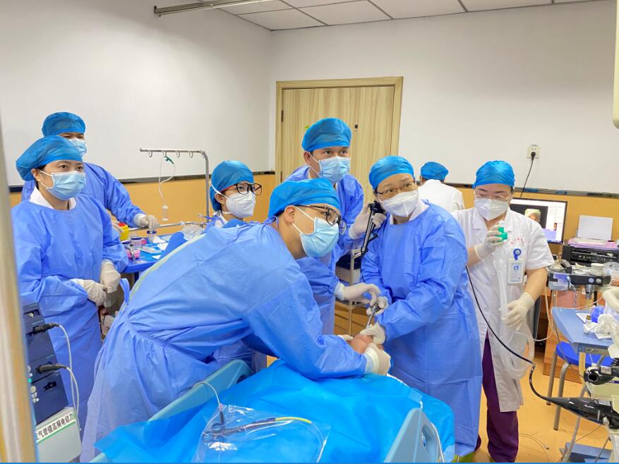 ▲洪苓苓博士(右二)专家团队正在精心实施手术