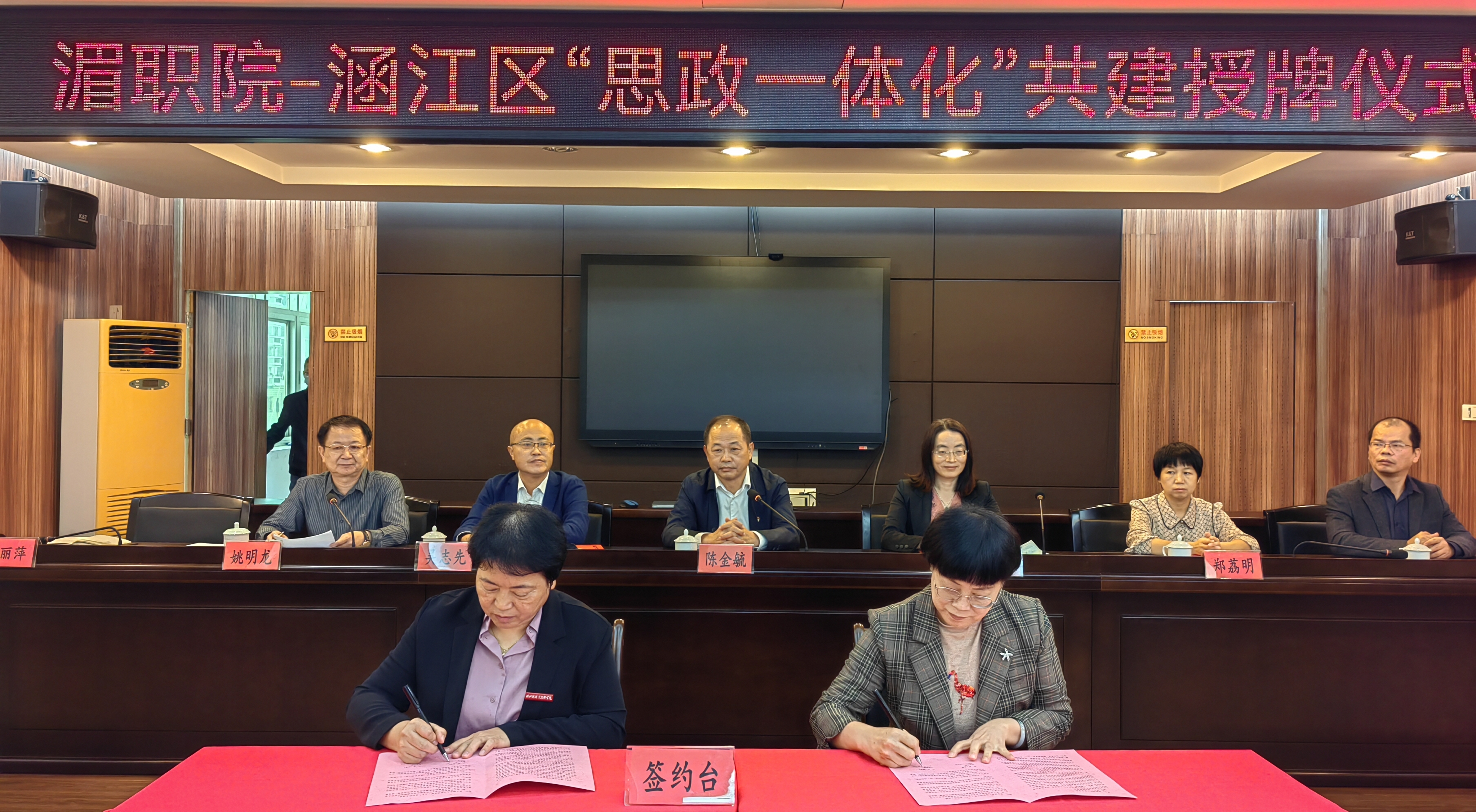 当日上午,湄职院和涵江区教育局举行校地“思政一体化建设”共建签约仪式,双方明确将充分利用社会实践活动时间和实践教育的丰富资源,积极开展生命教育、红色教育、生态教育、劳动教育、经典教育、法治教育、国防教育等系列实践教学共建活动,开发《习近平新时代中国特色社会主义思想》学生读本、莆仙思政教育资源等精品在线示范课程,建设数字校园思政专题精品项目。
