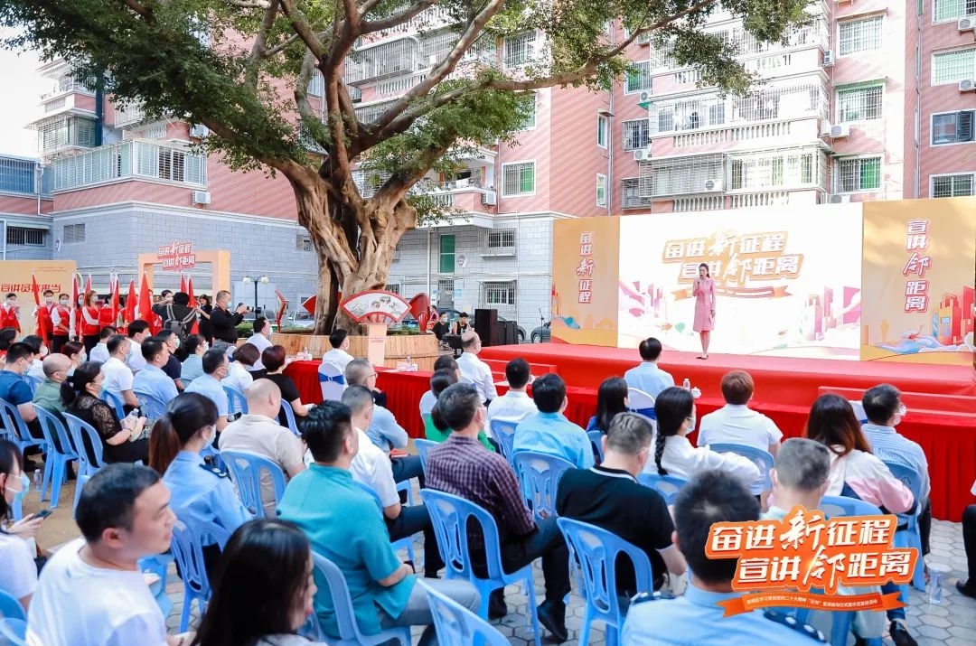 据悉,为深入学习宣传贯彻好党的二十大精神,用接地气、群众喜闻乐见的方式推动党的二十大精神深入人心,大力传承弘扬习近平总书记在厦门工作生活期间提倡的“远亲不如近邻”理念,思明区委宣传部创新打造思明“近邻”宣讲品牌,组建了1个区级“近邻”宣讲团和10个街道“近邻”宣讲队,采用“示范宣讲+巡回宣讲”的方式,用“1+N+X”的模式,即“1个专家解读+N个“近邻”宣讲员宣讲+X嵌入式学习活动”,将党的二十大精神宣传点植入口袋公园、小区庭院、文化广场等,切实打通基层宣讲“最后一公里”。