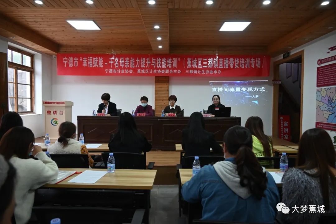 为有效服务乡村振兴促进家庭健康,推进人口均衡发展与家庭和谐幸福,深度融入乡村振兴和健康福建战略大局,激发计生母亲内生动力,提升劳动脱贫致富技能,增强计生家庭发展能力,11月22日,宁德市“幸福赋能-千名母亲能力提升与技能培训”流动学堂(蕉城区三都镇直播带货培训专场)开讲。