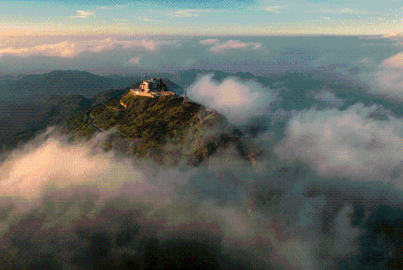 置身于九仙山国家气象站,犹如九霄腾云,如诗如画,如梦如幻。随着太阳的升起,云海不断翻滚着,倾泻成了动态的银河,一座座山峰从巨大的白幕中钻了出来,露出了翠绿的本色。
