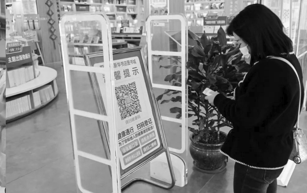 在新华书店门口,记者看到入口处设置了检验台,在醒目位置张贴了“场所码”。一位工作人员告诉记者,进门的时候需要出示健康码、扫场所码,大家也会积极配合。