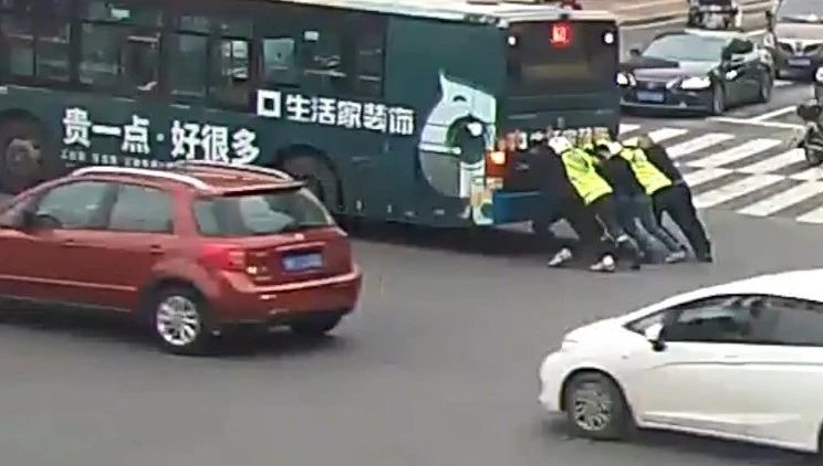 公交车却纹丝不动