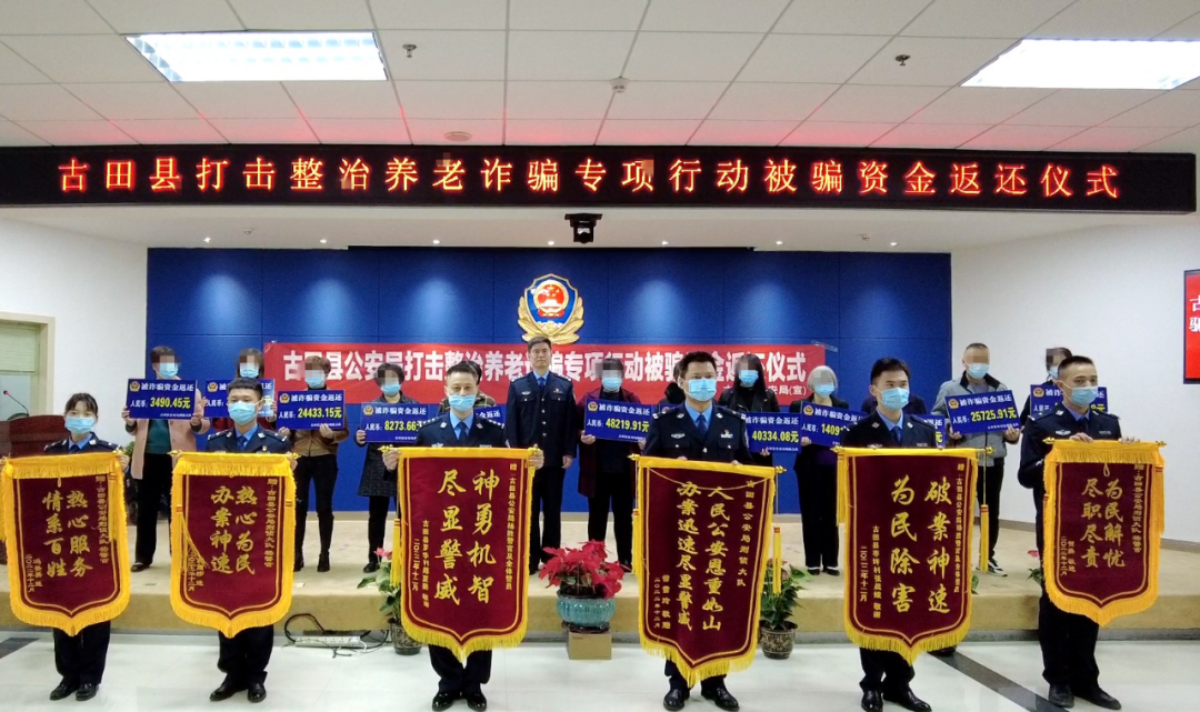 此次返还仪式的召开,进一步展示了公安机关打击犯罪的成果,强有力地震慑了犯罪、鼓舞了人心,彰显了古田公安维护社会安定、保障人民安宁的坚定决心和信心,切实增强了人民群众的安全感和满意度。