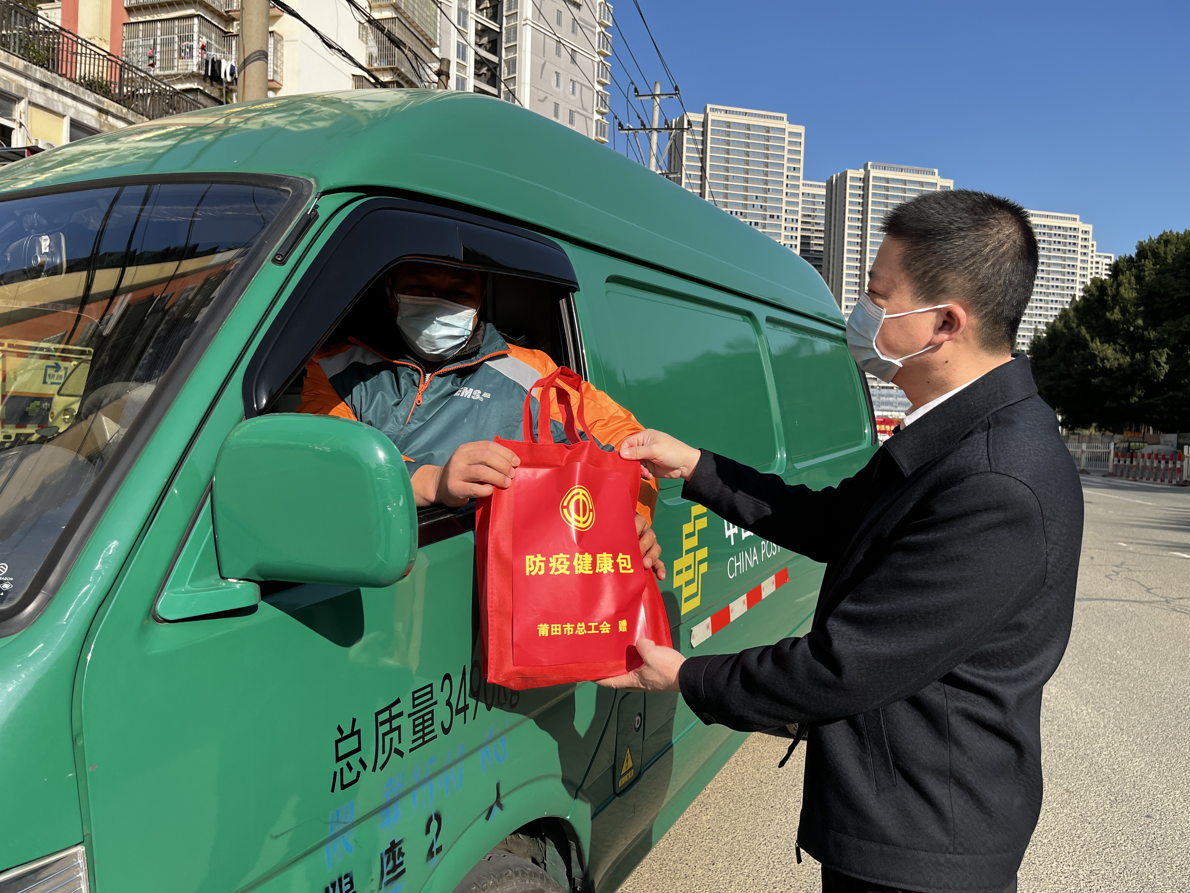 福建日报·新福建客户端 12月24日讯(记者 陈盛钟 通讯员 王丽)23日,莆田市总工会党组书记、副主席龚承恕带队来到中国邮政速递物流莆田市分公司北磨营业部,看望慰问一线快递小哥,为他们送上精心准备的“防疫健康包”,把党和政府以及工会组织的关爱关怀“速递”到一线职工的心坎上。此次活动也拉开了莆田市两节“温暖快递小哥 工会在行动”专项慰问活动的序幕。