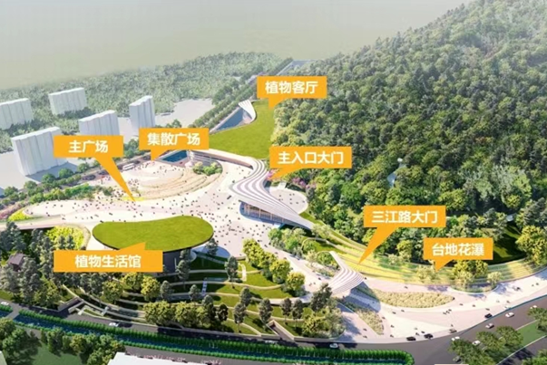 据介绍,三江口植物园采取统一规划,分四期立项、分步实施建设的方式进行。2023年,三江口植物园计划完成清凉山一期主入口建设,包括主入口广场、入口大门、游客服务中心、植物生活馆、配套半地下停车场等,此外还有一个植物专类园及部分主园路建设,计划投资2.6亿元。