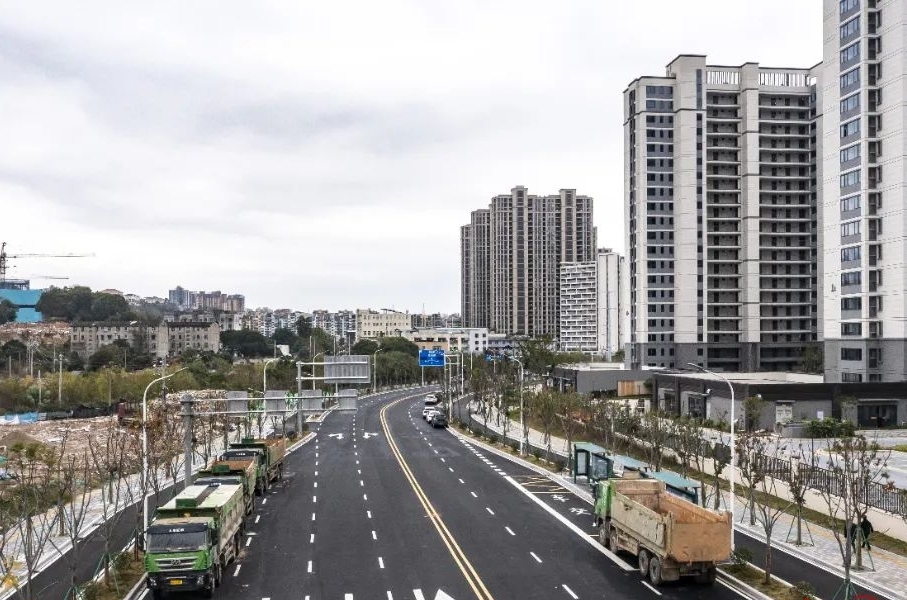 此次通车的秀山路延伸段(坂中路—现状秀山路)与周边的坂中路、厦坊路形成扇形结构,将助力周边居民畅达通行。