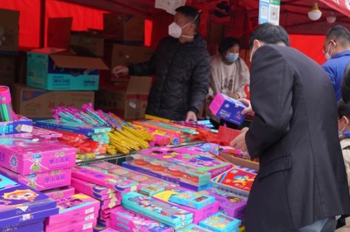 市民在销售点挑选烟花爆竹。(福州市市场监督管理局供图)