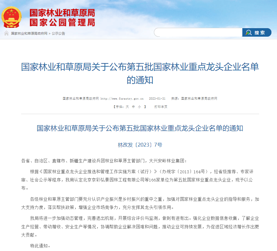 关于第五批国家林业重点龙头企业名单的通知