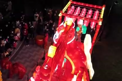 除了特色花灯,现场还有身着传统服饰的演员表演非遗舞蹈佾舞和伡鼓舞,舞龙舞狮等传统民俗也轮番上场。