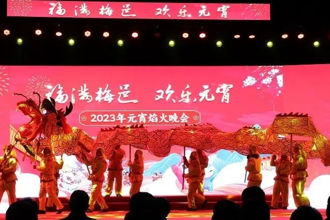 闽清县昨日举办“福满梅邑 欢乐元宵”元宵文艺晚会舞龙表演。本网记者 陈巧玲 摄
