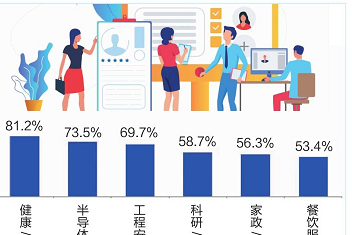 从厦门招聘市场来看,随着旅游业的迅速复苏,餐饮和酒店行业招聘量同比增速最大,增加了82%,用工需求较大。