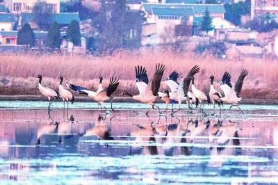 △ 贵州草海国家级自然保护区是国家一级保护动物黑颈鹤的主要越冬地之一,最新调查结果显示,在草海越冬的黑颈鹤已超过2500只。光明日报记者 徐谭摄/光明图片