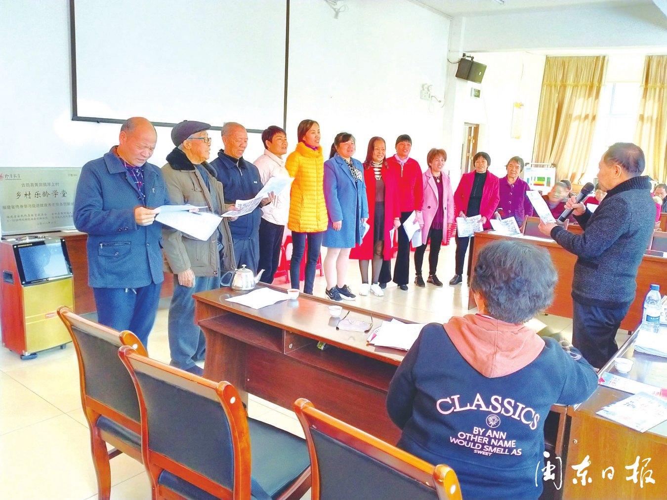 洋上村“乐龄学堂”学员在学唱快板词 黄才盛 摄