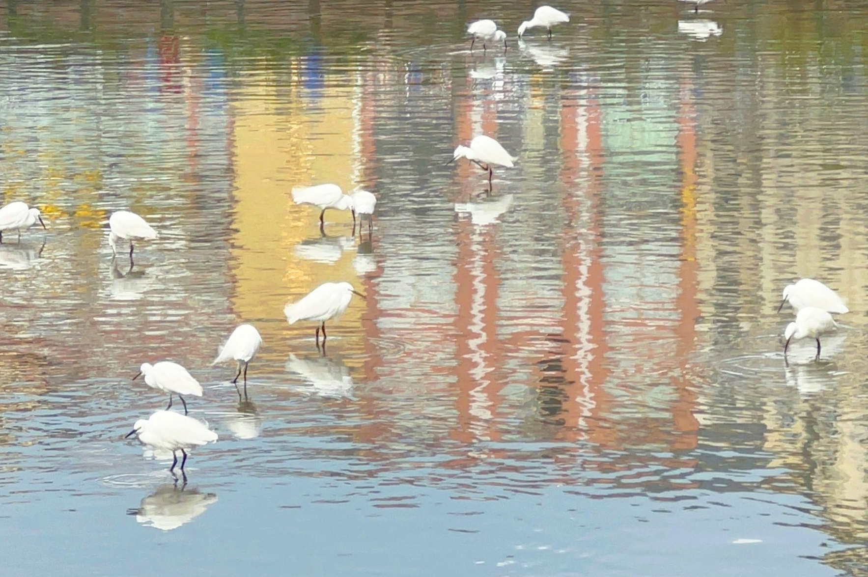 据悉,白鹭对环境的要求非常苛刻,是大气和水质状况的监测鸟,享有“环保鸟”的美誉,在内河中能看见成群的白鹭,足以说明白鹭看好了这里的生态环境。