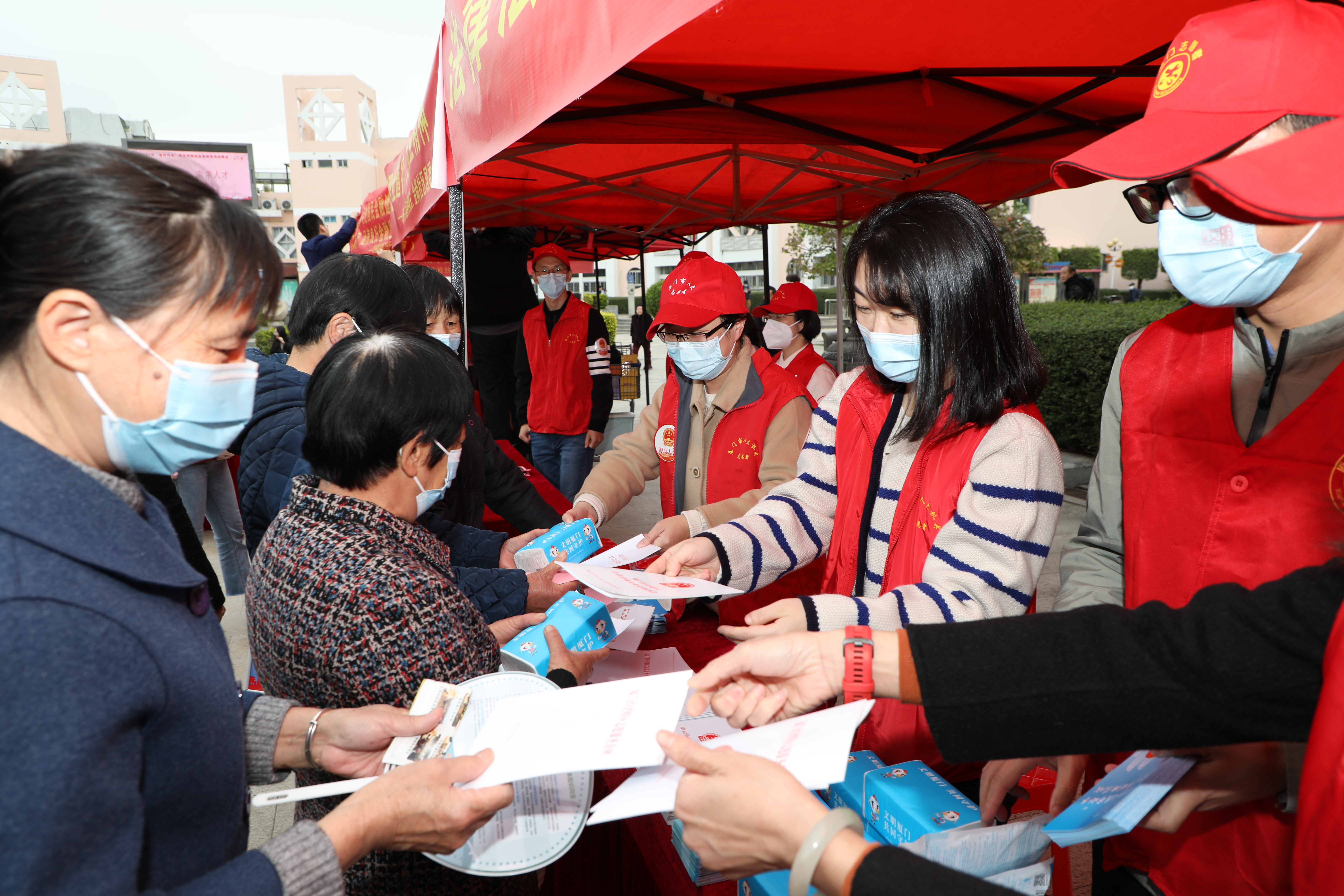 海峡导报·新福建客户端2月16日讯(记者 陈芹/文 肖攀/图)“阿姨您好,我们是市人大机关志愿者,您有什么法律问题都可以向我们咨询……”2月14日,“礼赞二十大 圆梦求职路”2023年“春风行动”助企稳岗金尚专场招聘会在金尚社区法治文化广场举办,作为本次活动的指导单位和参与服务的共建单位,厦门市人大机关志愿者发挥专业优势,为居民群众带来贴心的普法服务。