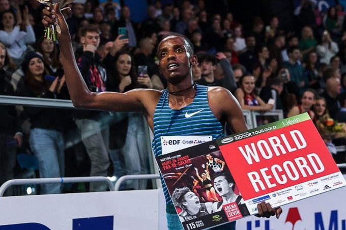 2月15日,在2023年法国列文室内田径赛上,22岁的埃塞俄比亚选手吉尔马以7分23秒81打破了保持了25年之久的男子3000米跑室内世界纪录,原纪录是肯尼亚选手科曼1998年在布达佩斯创造的7分24秒90。