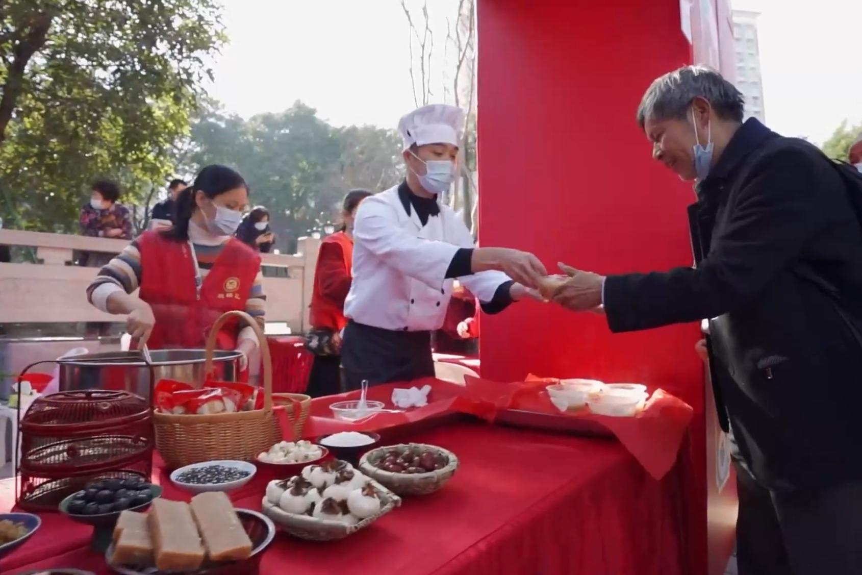 在鼓楼区东街街道军门社区,现场邀请福州评话伬艺传习所的艺术家表演非遗伬唱,让老人们在品尝美味拗九粥的同时,还能享受精神文化大餐。在鼓楼国光社区,老人们边看表演、边品尝拗九粥。志愿者们还为老人带来免费理发、义诊等服务。