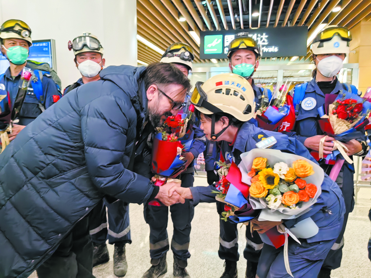 救援队平安返厦 在闽土耳其友人到机场迎接