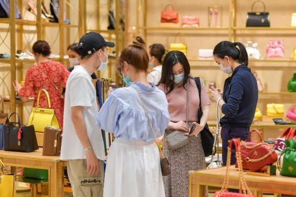 图为游客在海口日月广场免税店选购商品。骆云飞 摄
