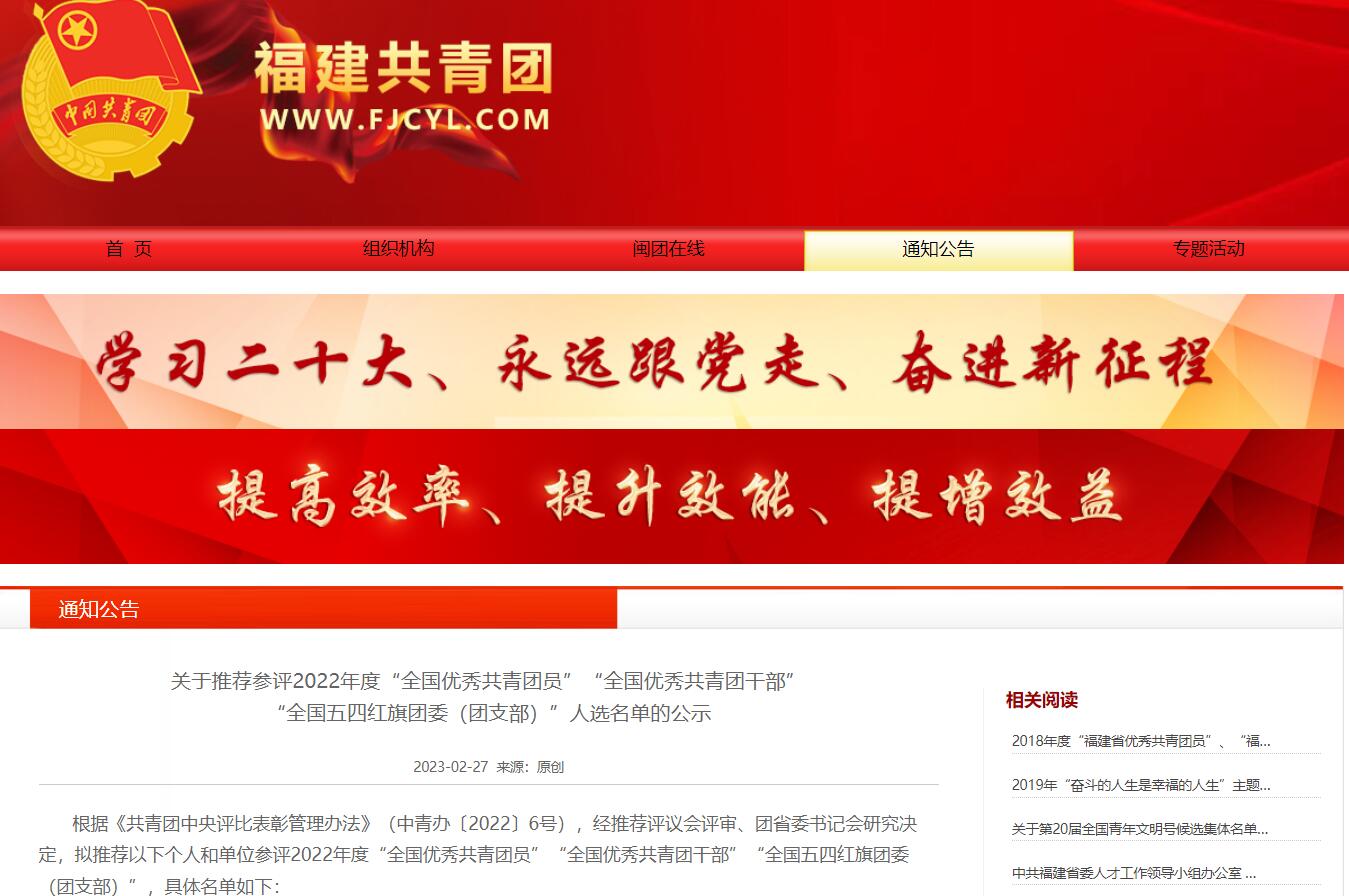根据《共青团中央评比表彰管理办法》(中青办〔2022〕6号),经推荐评议会评审、团省委书记会研究决定,拟推荐以下个人和单位参评2022年度“全国优秀共青团员”“全国优秀共青团干部”“全国五四红旗团委(团支部)”,具体名单如下: