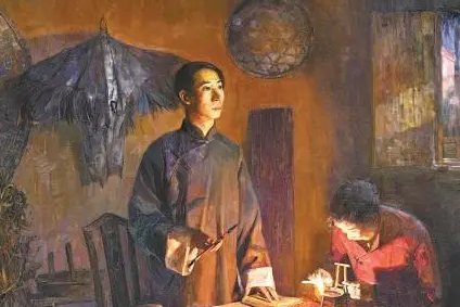 油画《陈望道翻译〈共产党宣言〉》,收藏于中国共产党历史展览馆。董帅摄