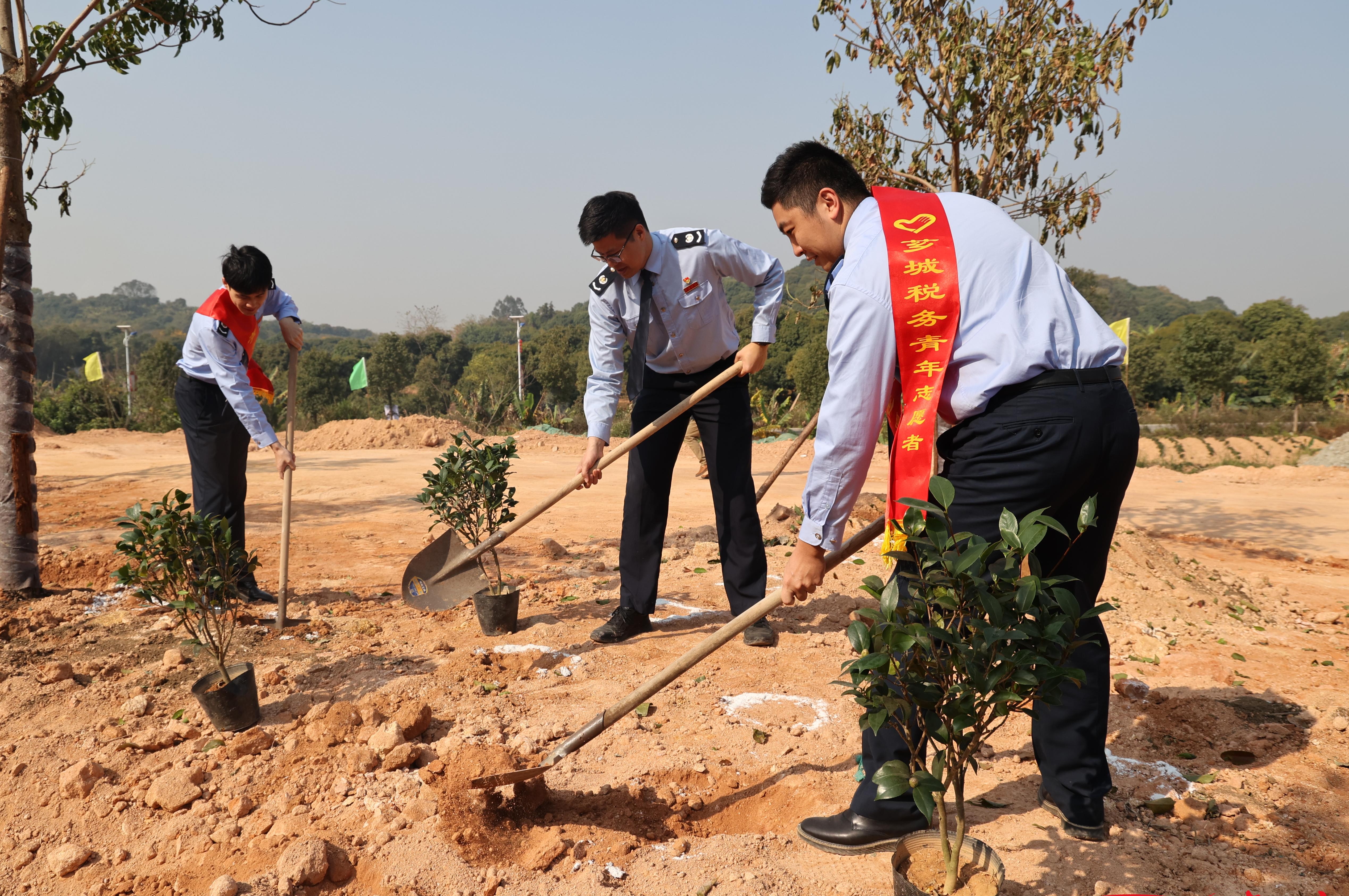 活动中,税务青年学习有关植物和国土绿化的相关知识,热情高涨地认领树种和工具,开始“绿色之旅”。大家团结协作,有的挖坑铲土,有的扶苗压实,还有的回填浇水……在青年的努力下,一行行整齐的树苗很快就在和煦的春风中焕发勃勃生机,最后每个人都郑重地签字并悬挂绿化认领卡。税务青年纷纷表示,挂上了认领卡就是签下了责任状,不仅要植绿,更要护绿,将“税务蓝”、“志愿红”和“环保绿”有机融合,做环境保护的践行者,做绿色家园的建设者和守护者,为建设更美好的家乡作出自己的贡献。