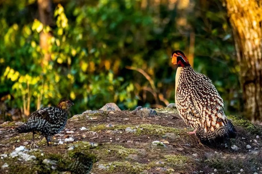 黄腹角雉是中国特有的濒危雉类。近期,在位于闽北的福建省建瓯市小桥镇梨山,一黄腹角雉家族频繁活动。