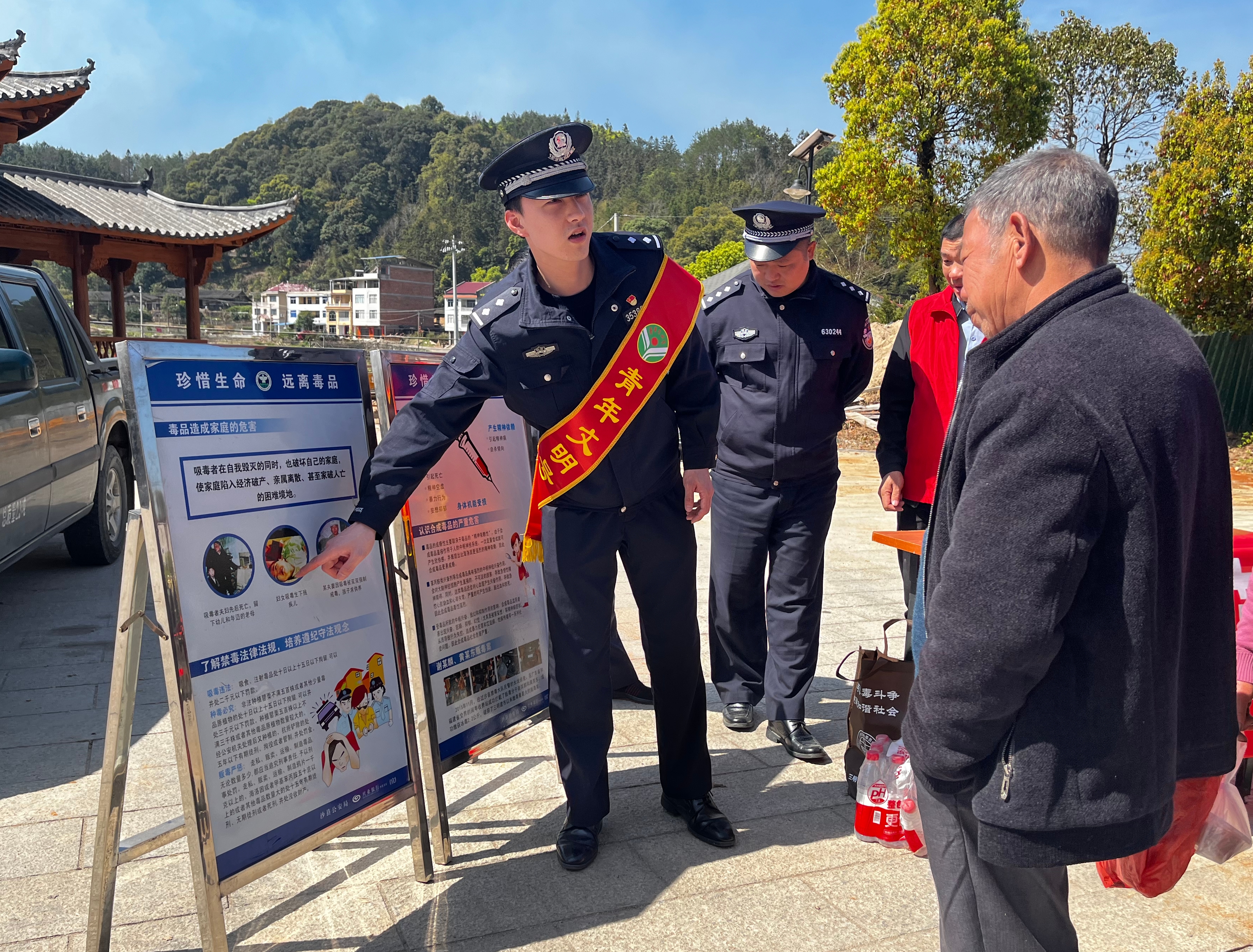 恰逢南阳乡赶圩日,来自四邻八乡的群众络绎不绝。三明所全国青年文明号志愿者们在街上摆摊设点,给来往群众发放禁毒知识宣传手册,展示各种仿真毒品样品,耐心细致为村民们讲解毒品的特征、危害,以及如何抵制和防御毒品以及禁毒相关的法律法规,号召广大村民共同参与禁种铲毒活动,共建平安无毒乡村。