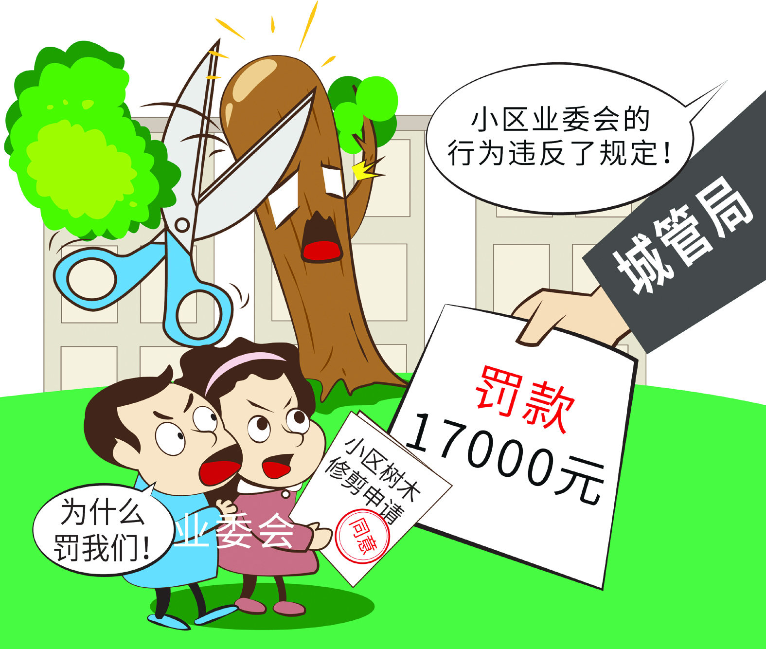 业委会委托园林公司对小区绿化树进行修剪,然而,这次修剪却将大树“剃光头”了,小区业委会也因此受到行政处罚。为此,业委会还向法院提起行政诉讼。这究竟是怎么回事?日前,同安法院审结了这样一起因过度修剪小区树木引发的行政案件。住宅小区树木究竟该怎么修剪?让我们听听法官怎么说。