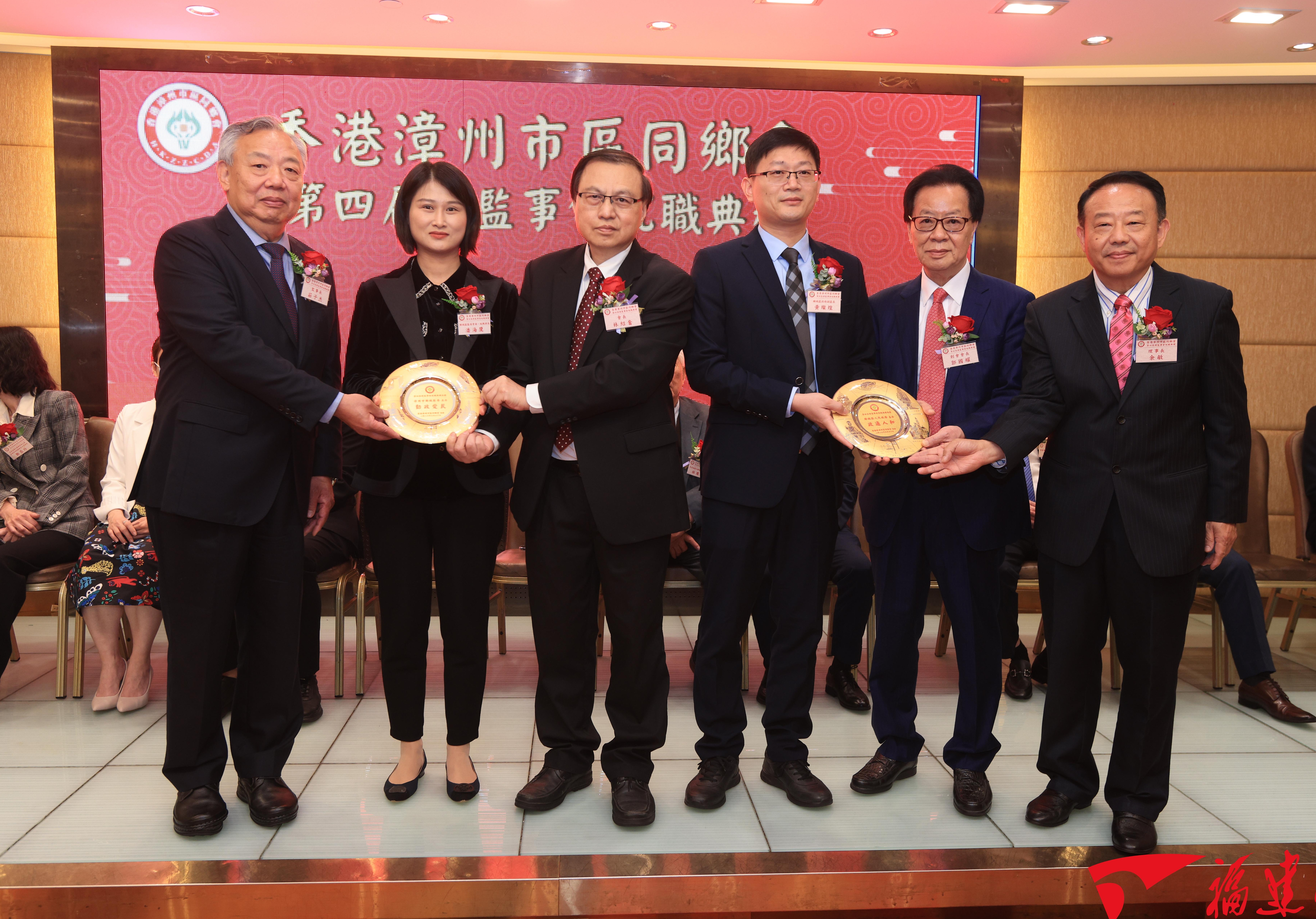 福建日报·新福建客户端4月2日讯(通讯员 庄鸿 曾晨 刘钦赐) 3月30日,香港漳州市区同乡会在港举行第四届理监事就职典礼。受中共漳州市芗城区委书记石振棋、漳州市芗城区人民政府区长何才成的委托,区委常委、统战部部长潘海鹰,区政府副区长黄灿煌率团到会祝贺。中联办港岛工作部副处长王清福,中联办社团联络部副处长卢海锋,香港福建社团联会荣誉主席林广兆,第十四届港区全国人大代表凌友诗、黄冰芬,漳州同乡总会永远会长郑亚玲,漳州同乡总会会长郭绿明,华闽集团代表,漳龙实业有限公司董事长吴泽宇,立法会议员郭伟强等嘉宾,以及300余名海内外嘉宾代表出席庆典活动。