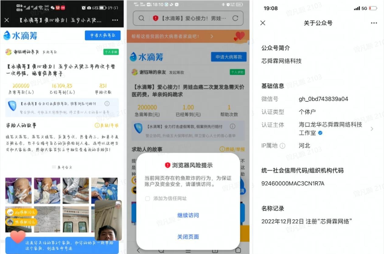 今年3月9日,辽宁省阜新市公安局海州分局全链条侦破一起利用伪造水滴筹链接骗取筹款的电信网络诈骗案件,斩断了一条伪造水滴筹网站链接、收款接口和发布虚假筹款信息黑灰产业链条,这起案件为全国首例。