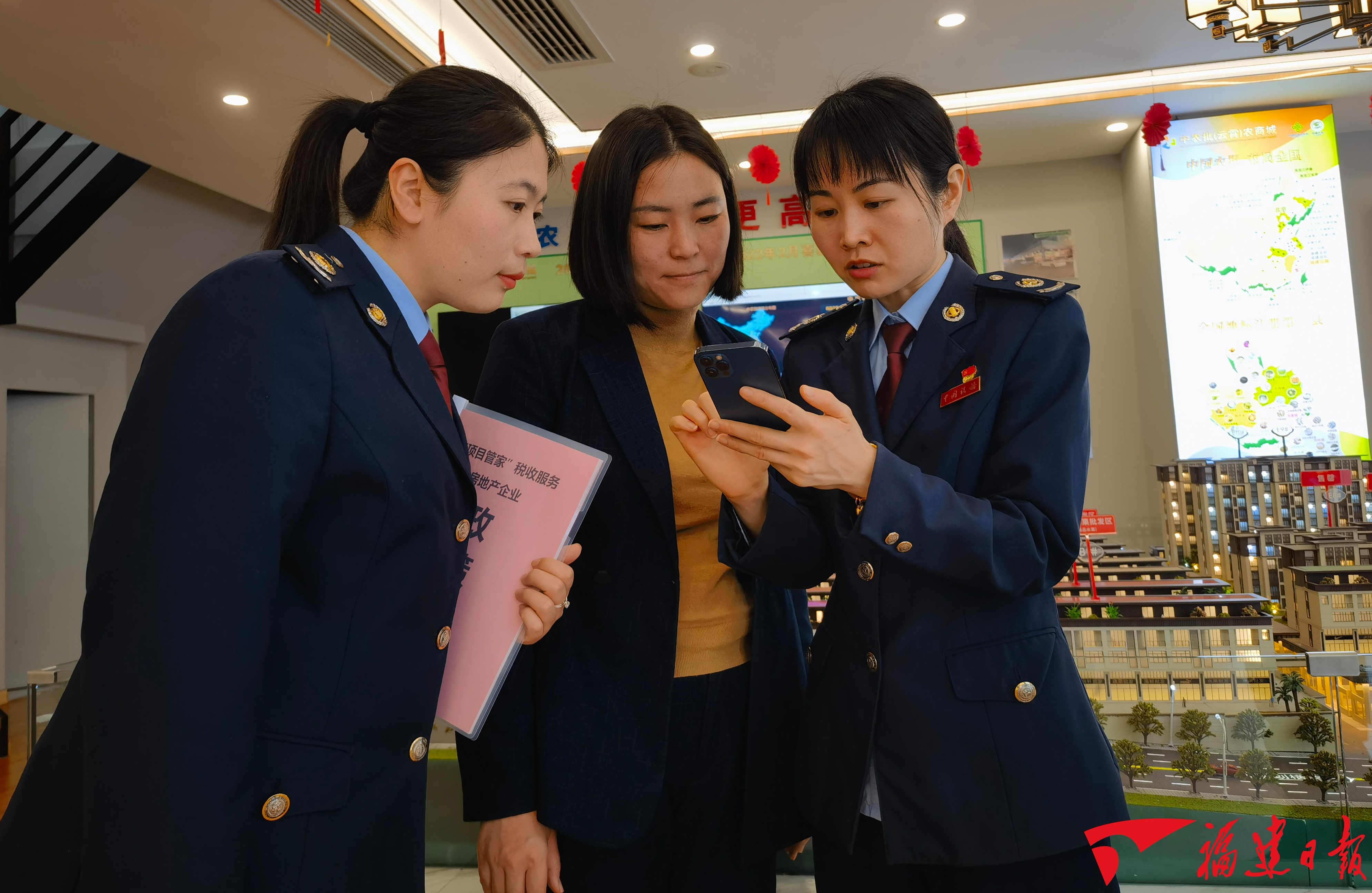 “我局把‘项目管家’税收服务工作作为优化税收营商环境的创新举措,坚持‘提前介入、全程跟进、统筹规划、精准到位’的原则,打造硬‘核’管家服务品牌,为重点项目‘量体裁衣’送政策,‘问需问计’解难题,‘保驾护航’促发展,全力推动县重点项目落实落地、做大做强。”云霄县税务局第一税务分局(办税服务厅)副局长吴佳娜说。