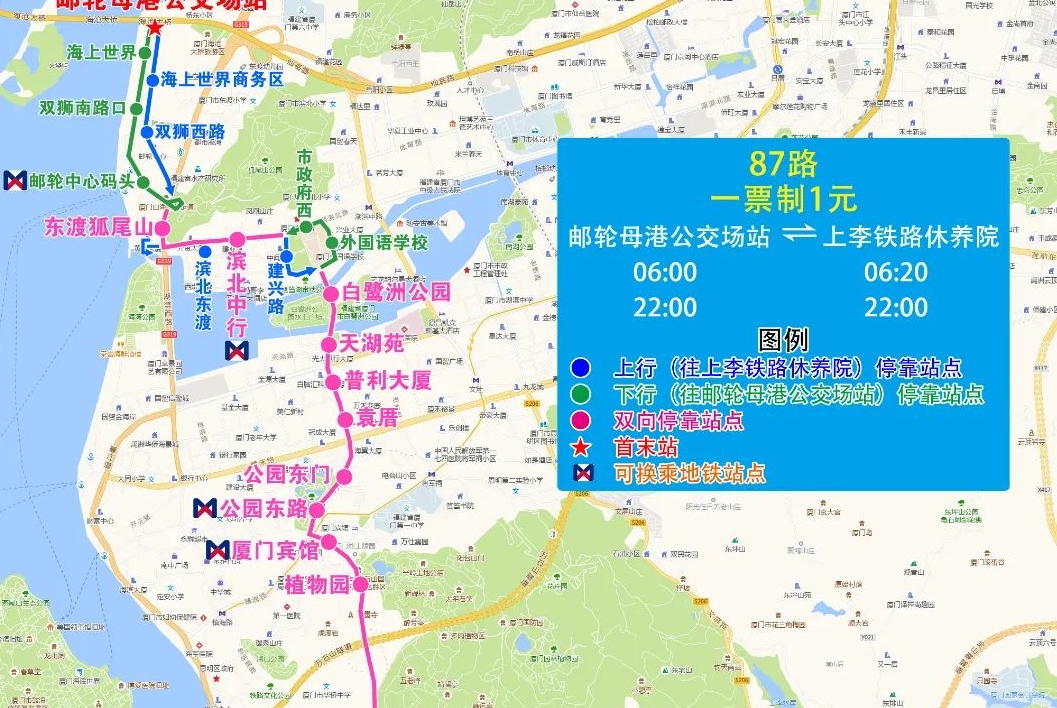 87路、B3路:白鹭洲、植物园、厦大、环岛路方向。