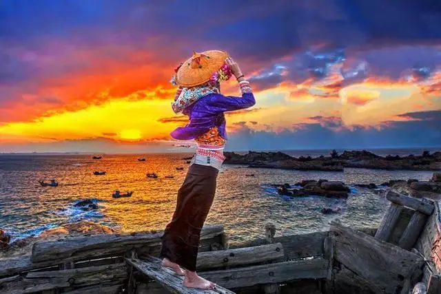 当落日余晖洒落海面,一群惠安女挑着赶海的渔获行走在金色的沙滩上,阵阵海风吹动着她们印花的头巾和宽大的裤管,人们的目光不由自主地被这风情旖旎的一幕所吸引。