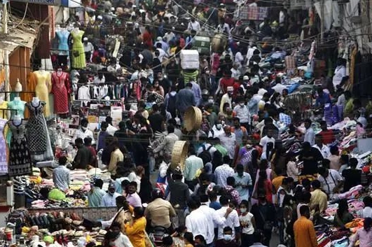 资料图:印度孟买市场中的人群。