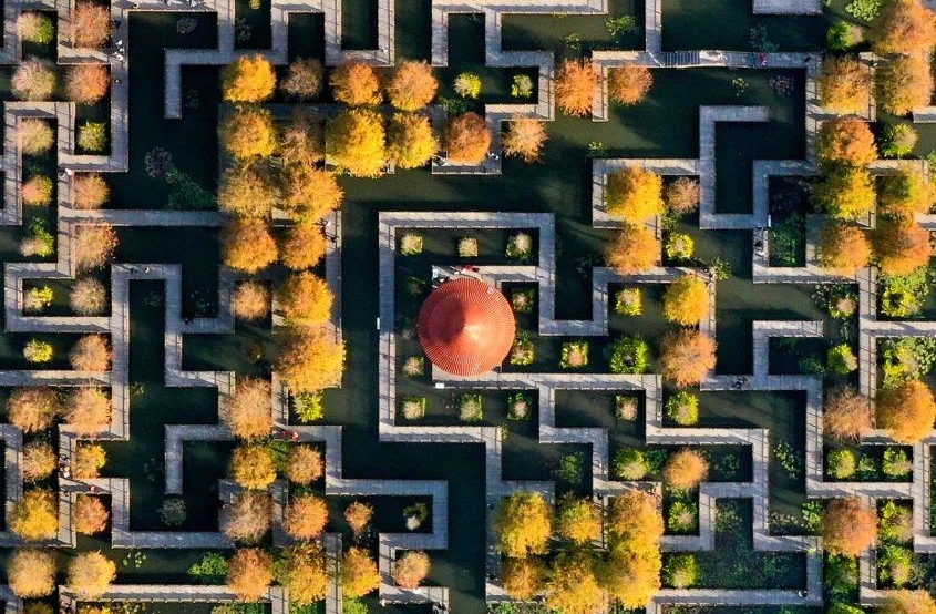 漫步在迷宫木栈道上