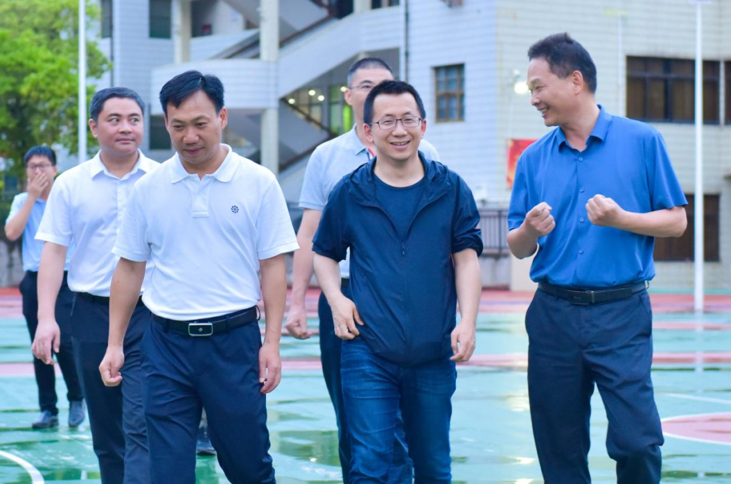 张一鸣(右二)参观龙岩市永定一中(资料图)