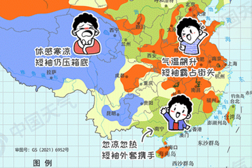 需要提醒的是,在西北地区东部、华北西部和北部,虽然白天气温回升明显,但昼夜温差较大,早晚体感微凉,建议用洋葱穿衣法,短袖外套“携手”,方便及时穿脱。华南大部、江南南部以及云南北部和东部等地受降水影响,天气忽凉忽热,也需短袖搭配外套。